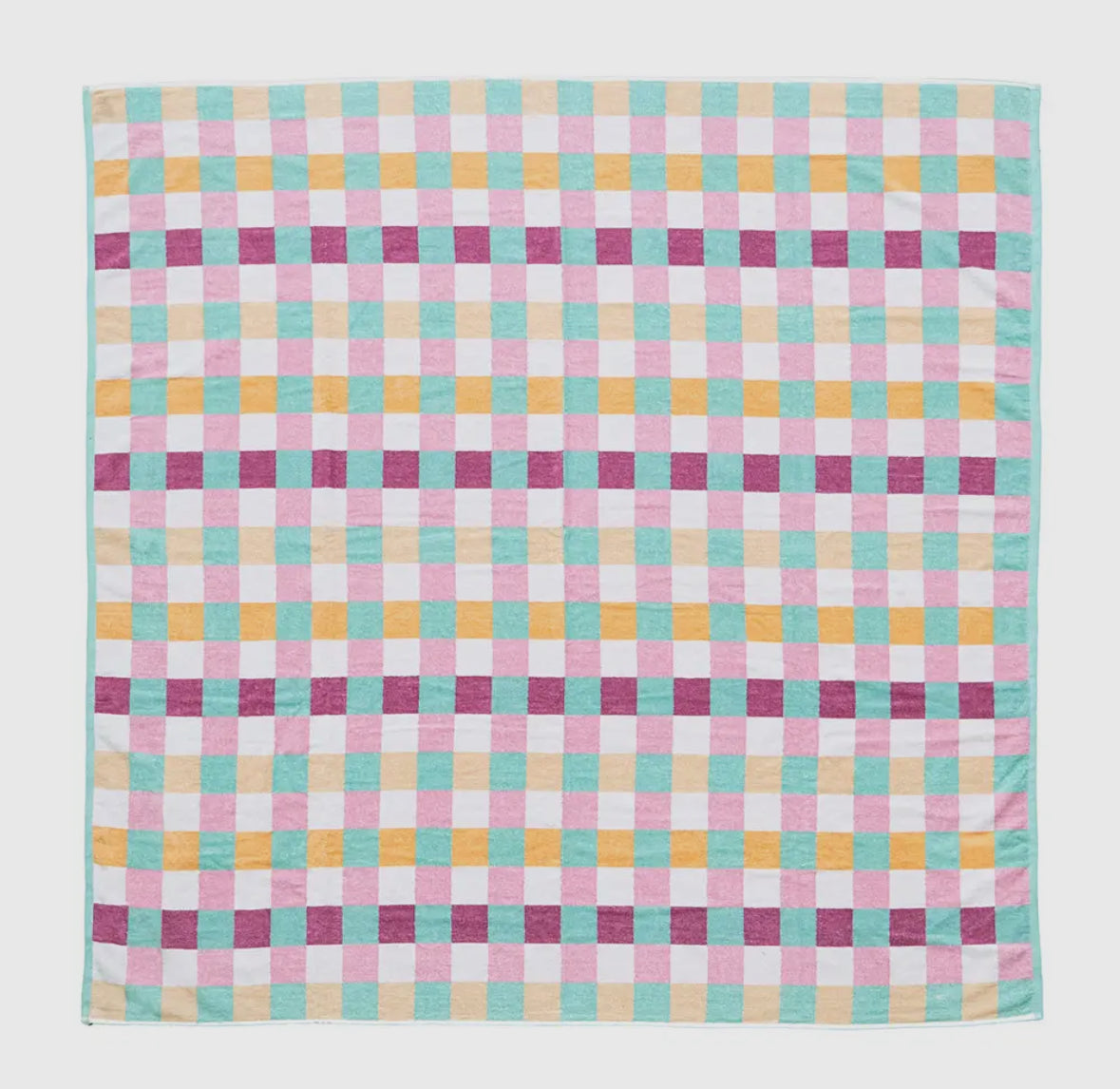 This super large beach towel blanket is perfect for wrapping yourself up in, sharing with a friend or sitting on it as you enjoy a bite to eat. The jacquard design has been woven from 100% cotton, and features a check pattern in many colours. Featuring soft velour on one side, this is an ideal addition to your collection, ready for all of your beach or poolside adventures.